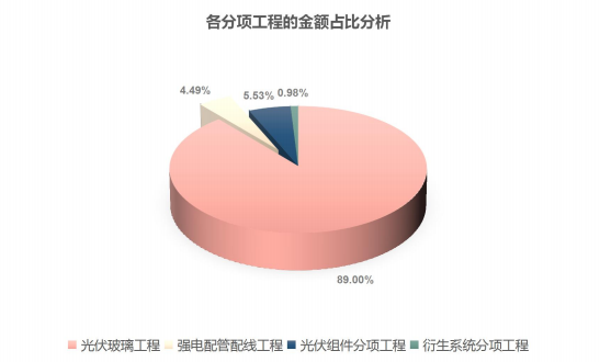 (2)在工程全費(fèi)用中:光伏玻璃幕墻材料1(6+1.14PVB+3.2碲化鎘+1.14PVB+3.2+12Ar+6Low-e(雙銀、全鋼化)光伏玻璃幕墻)材料費(fèi)用占比37.89%,光伏玻璃幕墻材料2(3.2碲化鎘+0.5POE+3.2普白屋面光伏玻璃)材料費(fèi)用占比8.10%,其余費(fèi)用占比54.00%。即光伏玻璃幕墻總材料費(fèi)用在工程總費(fèi)用中的占比達(dá)45.99%。